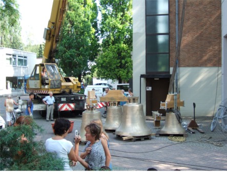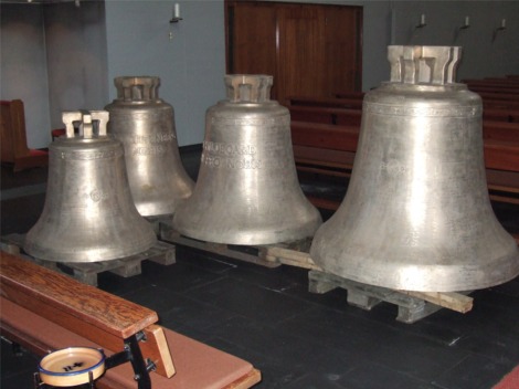 Nun warten die Glocken in der Kirche auf den Einbau in den Glockenturm.